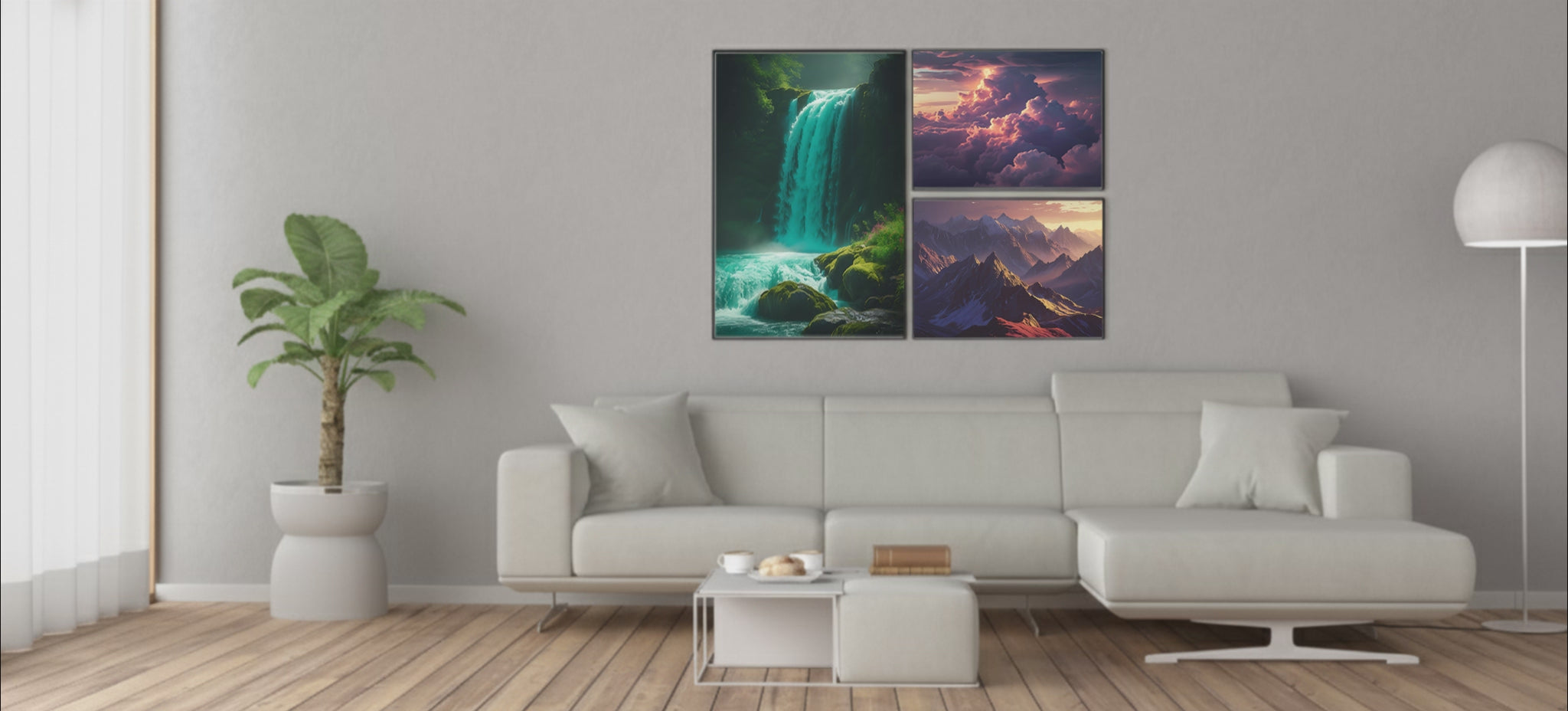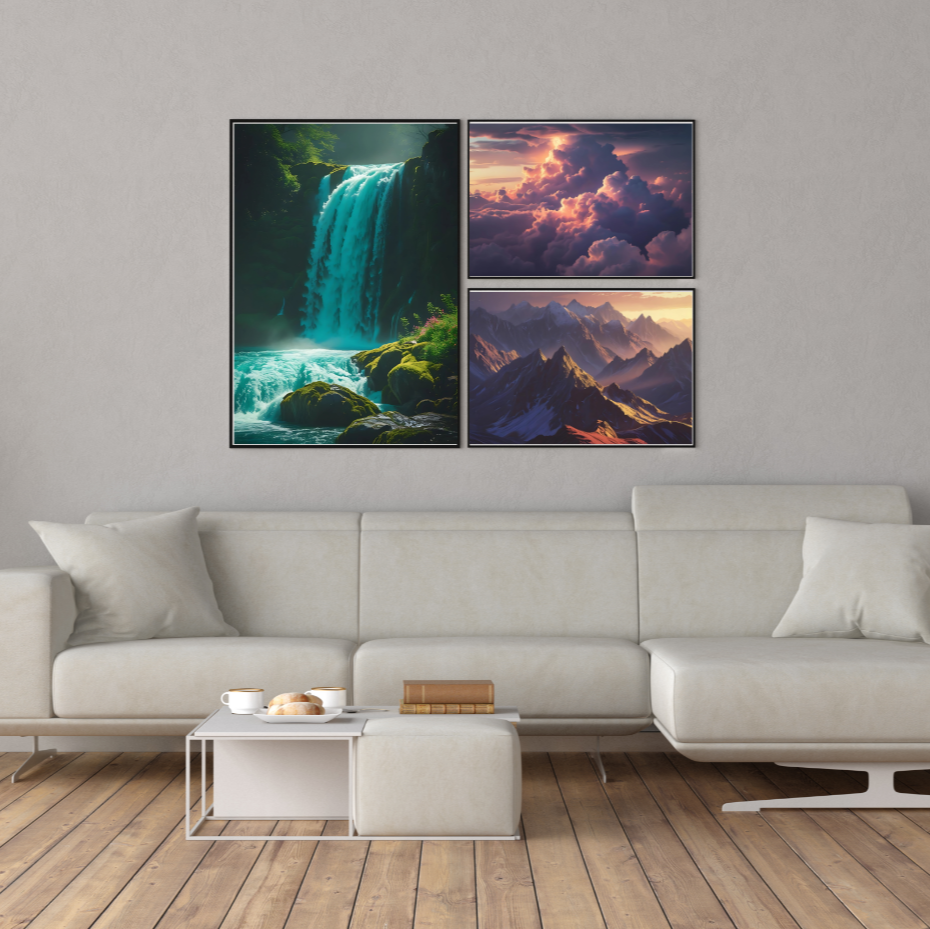 A series of three — water, sky, and mountain — each element captured in its purest form.