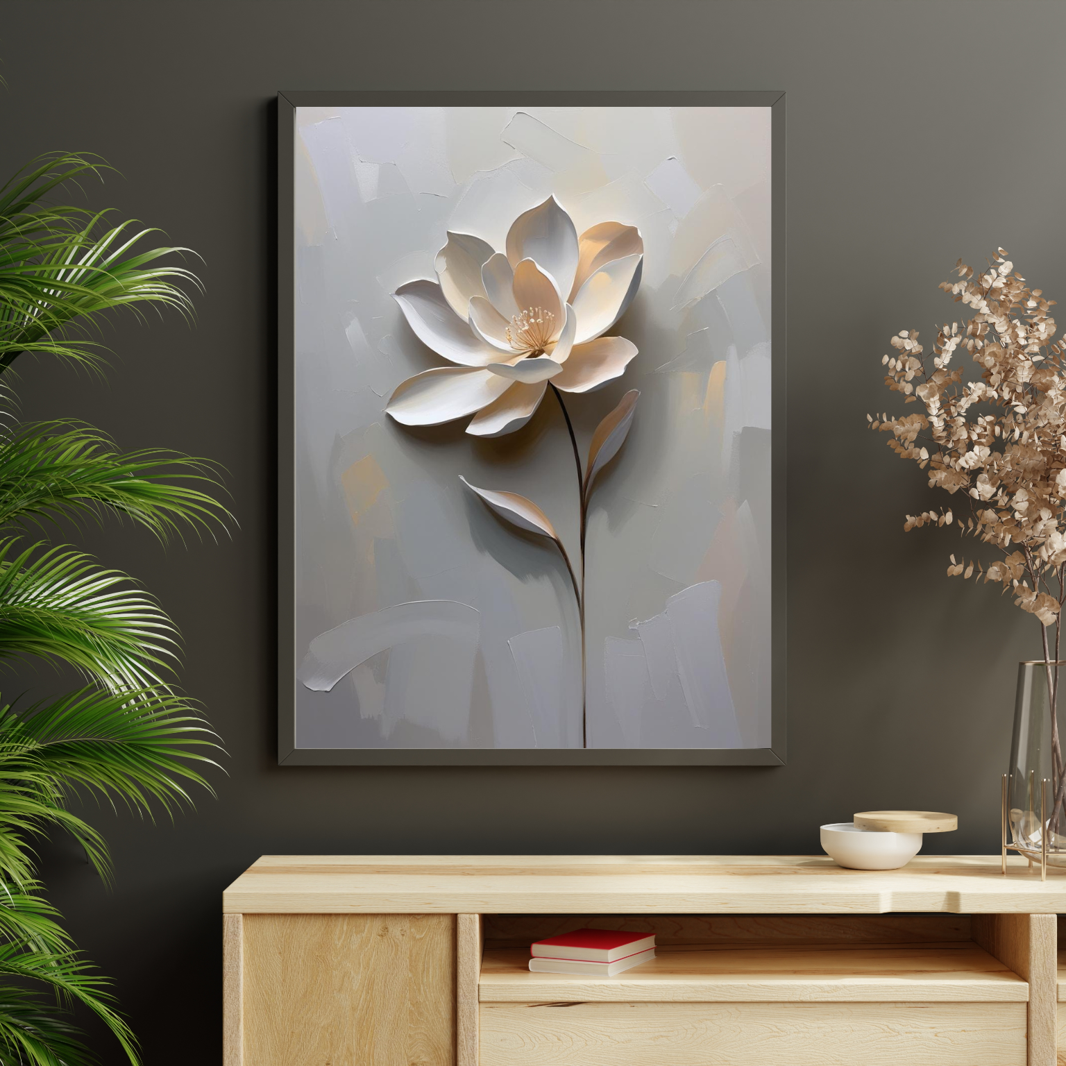 Let your space bloom with grace. This floral artwork captures the delicate beauty of a single flower in soft, natural tones. Its gentle presence adds warmth, peace and elegance to any room. Perfect for those who appreciate simplicity, nature and timeless design. Printed on high quality canvas for a lasting impression.