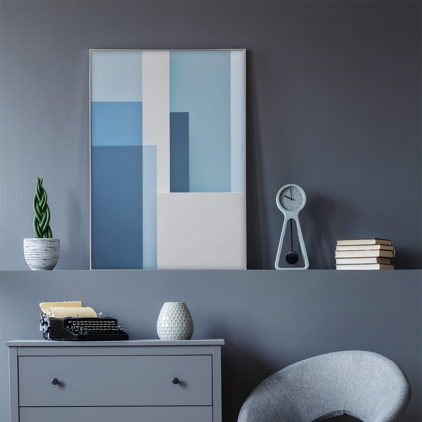 Skapa en modern och stilren atmosfär med "Azure Blocks", en abstrakt canvas med ett dynamiskt blått blockmönster. De djupa och ljusa nyanserna av blått skapar en harmonisk balans mellan struktur och rörelse, vilket gör denna tavla till ett perfekt tillskott i alla rum.