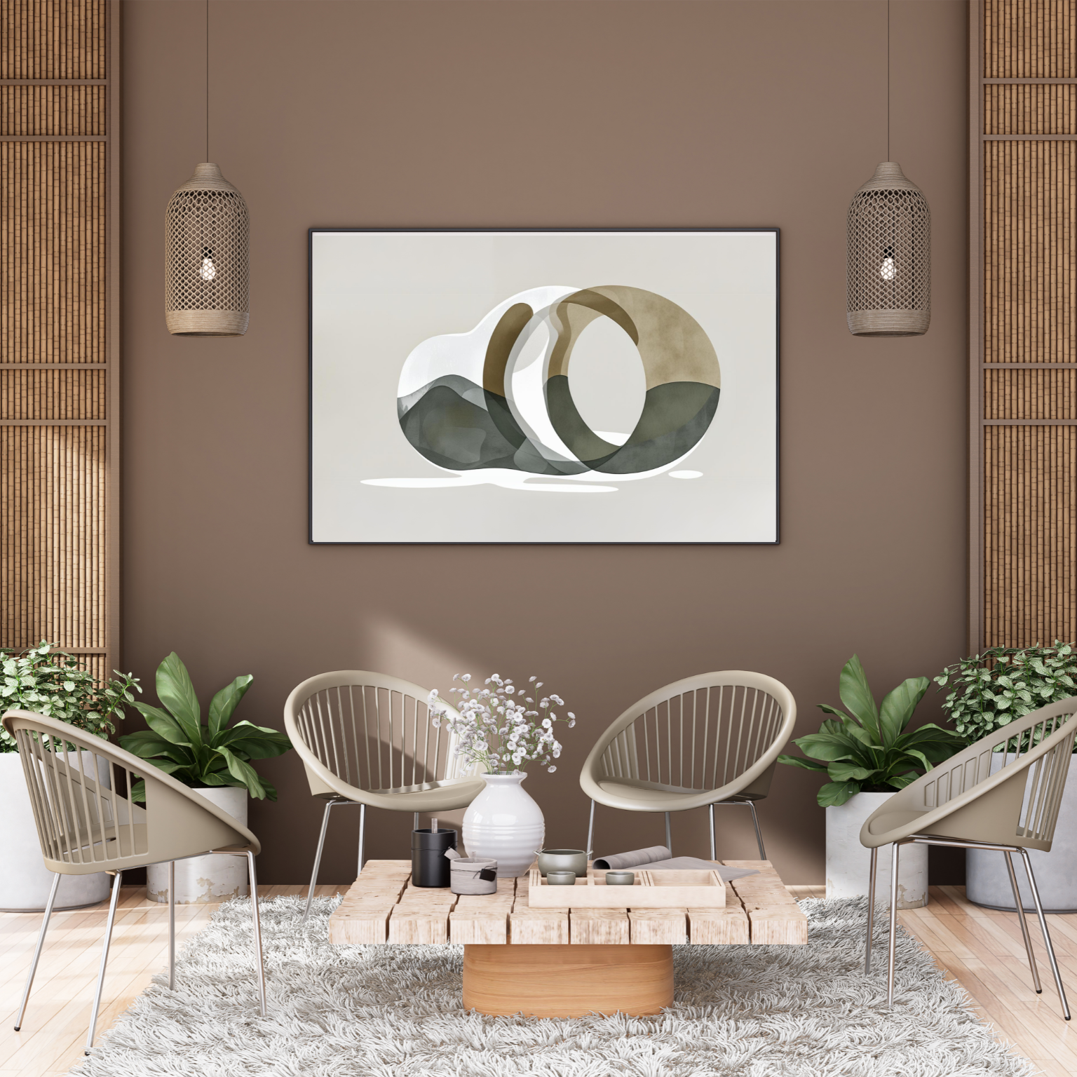 Quiet Circles distills Scandinavian calm into soft, overlapping forms—sand, slate, and warm beige flowing together in gentle motion. The muted palette and rounded geometry create a serene focal point without overpowering your space, making it an easy fit for minimalist interiors, Japandi vibes, and modern homes. Hang it above the sofa, in a neutral bedroom, or in a quiet office nook to bring balance and light. Subtle textures add depth up close while the composition stays airy from a distance, inviting the eye to slow down and rest.