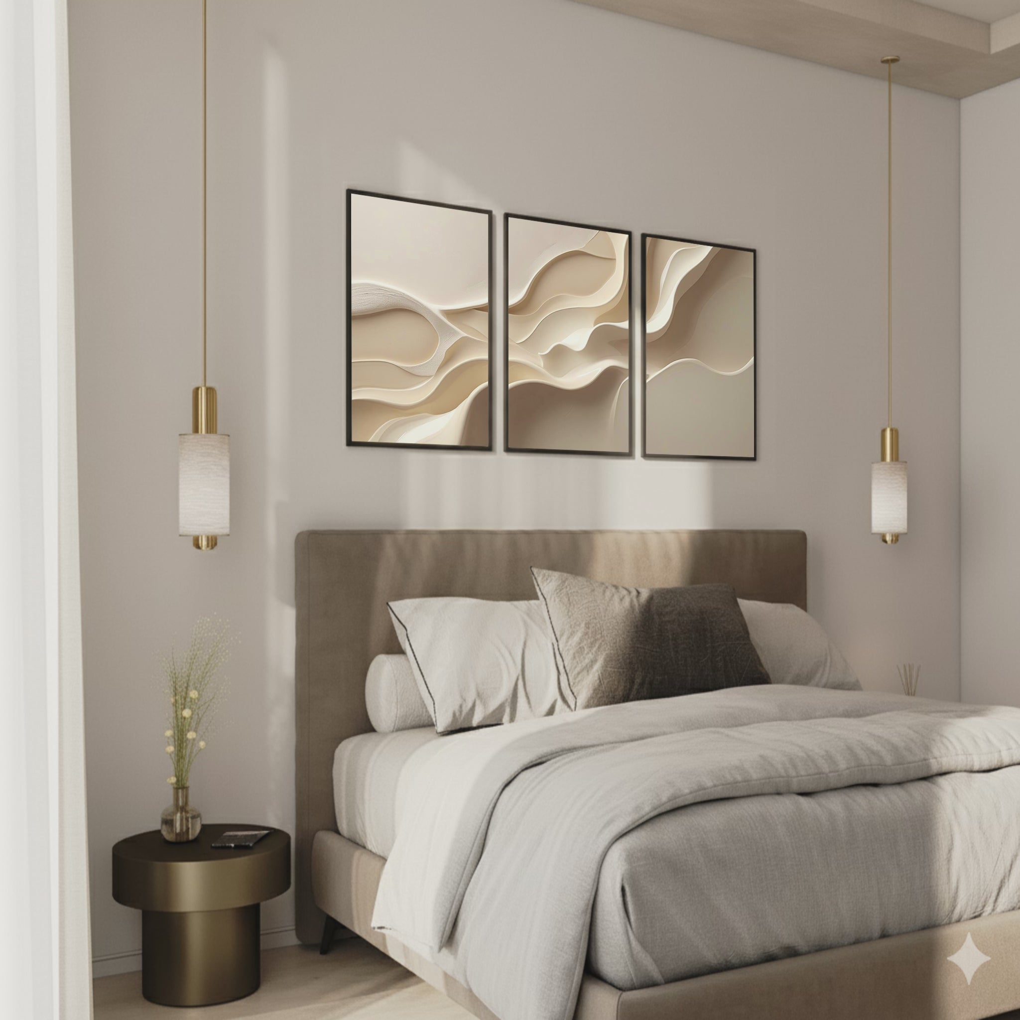 En lugn och tidlös tavla i mjuka beige toner som skapar en harmonisk känsla i rummet. Med sina subtila nyanser och minimalistiska uttryck passar den perfekt i såväl moderna som klassiska hem. Den lugnande färgpaletten ger ett varmt och inbjudande intryck – en vacker detalj som smälter in men samtidigt ger rummet karaktär.